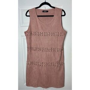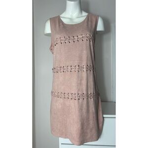 Missguided Mauve Pink Faux Suede Braided Lace Up Mini Shift Dress Size 12 Large
