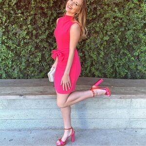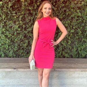 Missguided Hot Pink shift dress with tie belt, can be worn with or without. Has stretch, mock neck.