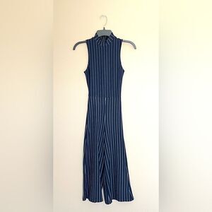 Navy striped wide leg jumpsuit by Missguided! Cropped and hits above the ankle. Turtleneck. Back zip closure. Size 4. In great condition!