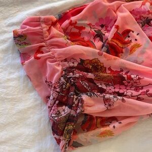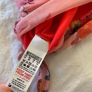Misguided women’s size Medium // 12 UM ruched pink sheer printed top