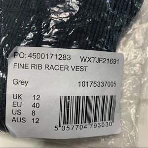 Missguided New With Tags fine rib racer vest in charcoal size 8