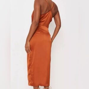 Missguided Orange Satin Midi Dress in great condition.