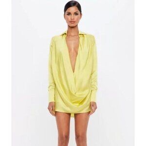 Missguided Peace & Love Satin Cowl Chartreuse Yellow Mini Satin Dress US 6 NWT
