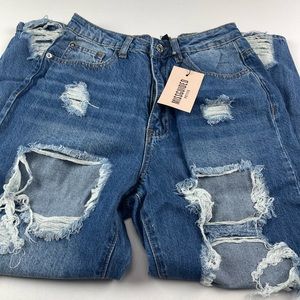 Missguided Petite Riot High Rise Ripped Jean