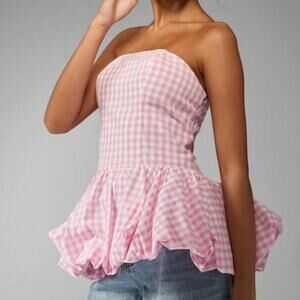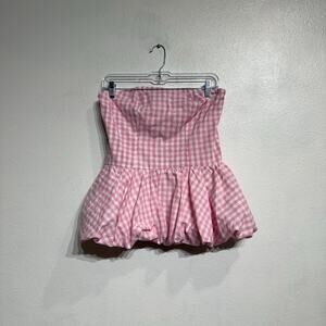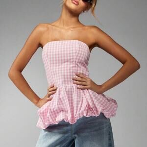 Missguided Pink Gingham Strapless Bandeau Top Sz M