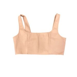 Chic and modern Missguided vegan leather crop top in a soft blush pink. Features a structured design with thick straps and square neckline—perfect for nights out, festivals, or layering with a jacket. Style with high-waisted jeans, trousers, or skirts for an effortlessly trendy look.