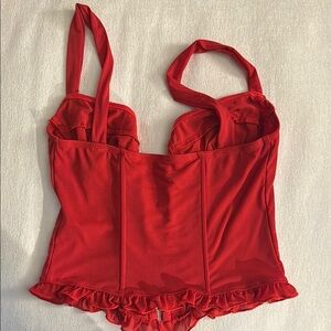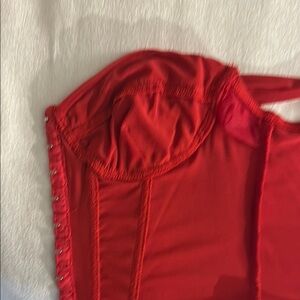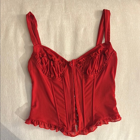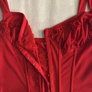 Missguided Red Ruched Corset with Ruffled Hem