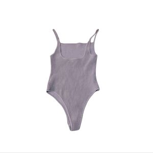Missguided Restyld Mauve Purple Rib Knit Layered Bodysuit 6 Neutral Minimalist