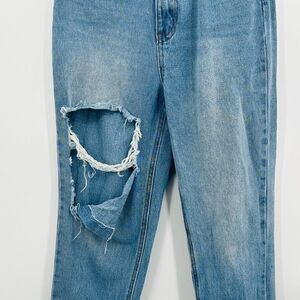 Missguided Riot Hi Rise Mom Jeans Womens 2 Reg Distressed Blown out Knee Blue