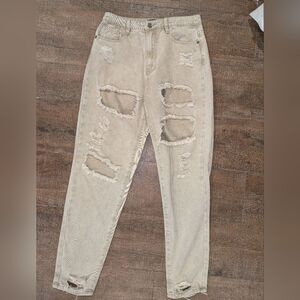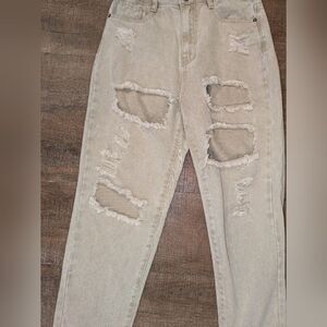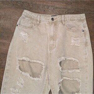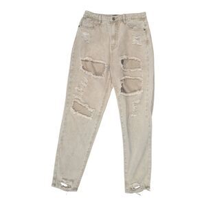 Missguided Riot High Rise Extreme Ripped Mom Jeans Stone Size: 6