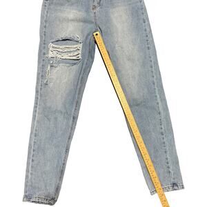 Missguided Riot High Rise Mom Jeans Distressed Light Wash Size 4R
