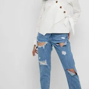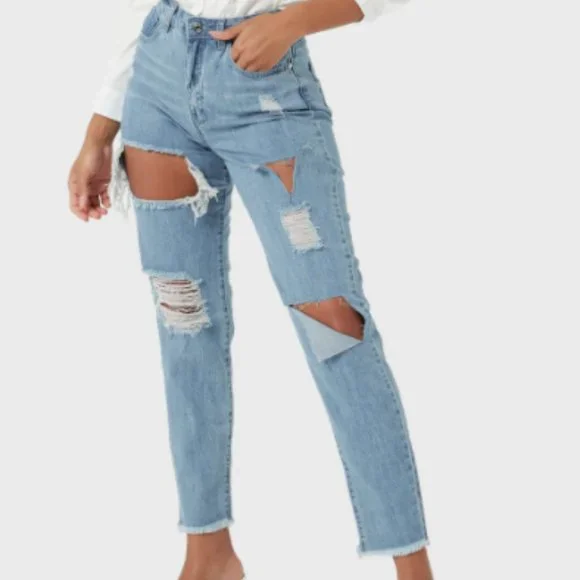 Missguided Riot High Rise Slit Rip Mom Jean