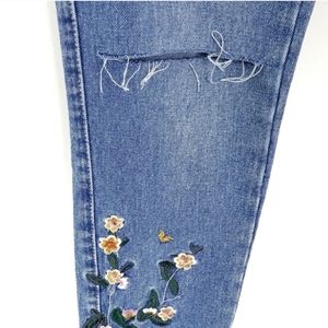 Flowers just got a whole lot more fierce in these ripped and frayed high-rise denim finished with floral embroidery that gives the distressed style a pretty finish.
