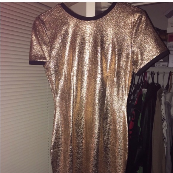 Adorable gold dress with rounded bottom and zip up back from Missguided. Worn once, in great condition! Stretchy and sexy! Selling because it's too small for me ๐ข Size 10UK (6US)