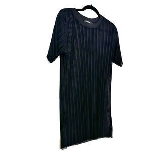 Missguided Sheer Mesh Pleated Short Sleeve Crew Neck Tunic Top Black Size 14