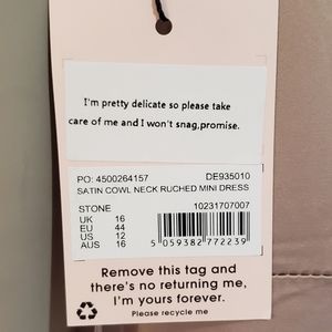Missguided Size 12 Blush Pink Satin Cowl Neck Ruched Mini Dress High Low Sides