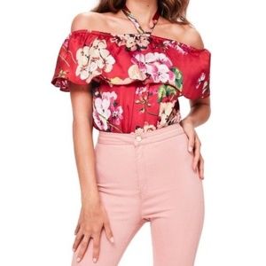 Missguided Sleeveles Bardot Blooms Flower Bodysuit