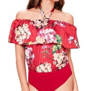 Missguided Frill Sleeveless Bardot Blooms Flower Printed Bodysuit Size 4 BNWT