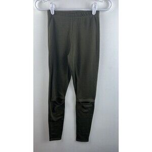 Missguided Sz 6 Leggings CUT OUT Knee Army Green Yoga Stretch Women's Pull on Elastic waist