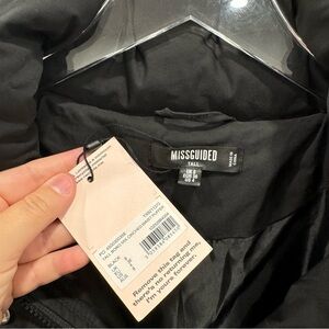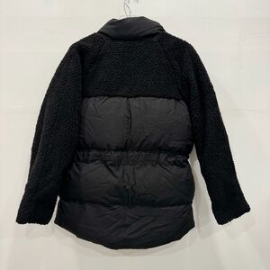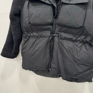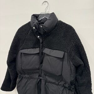 Missguided Tall Borg Mix Cinched Waist Puffer Jacket Black Teddy Size 4