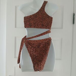 Missguided Tall High Leg Bikini Wrap Tie Style Crinkle Set Animal Print Size 6