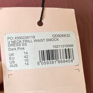 Missguided V-Neck Frill Waist Smock Dress in Dark Pink Women's Size US 10 New