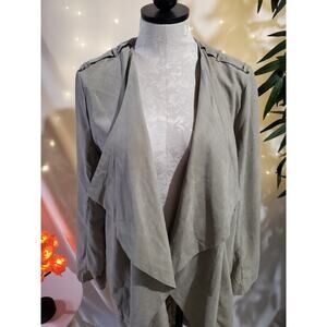 Missguided Vegan Suede Longline Waterfall Trench Jacket Womens Size 10 Beige Tan