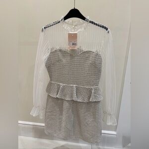 Missguided White Long Sleeve Dress with Sheer Details
