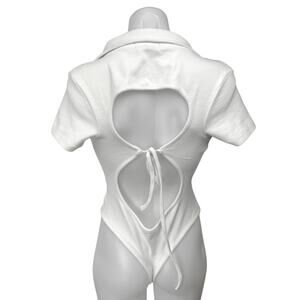 Missguided White Short Sleeve Collar V-Neck Cutout Tie Back Bodysuit Polo Top 6