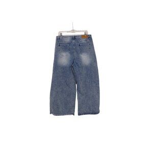 Missguided Wide Leg High Rise Distressed Jeans Light Wash Size 12 #1235