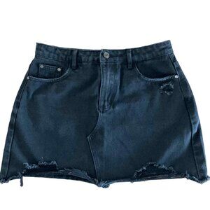 Missguided Womens Black Cotton A-Line Denim Jean Skirt Small Raw Hem