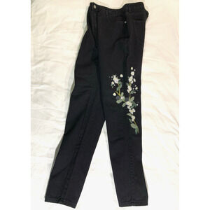 Missguided Women's Black Jeans Size 8 Floral Embroidery Cotton