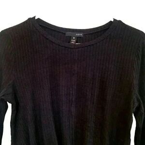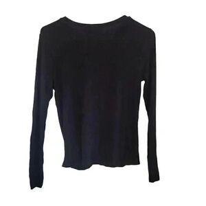 Missguided Women's Black Ribbed Rayon/Spandex Crew Neck Long Sleeve Twist Front Knit Shirt EUC sz S