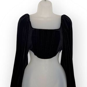 Missguided Women’s Black Velvet Puff Sleeve Corset Crop Top size 4 US