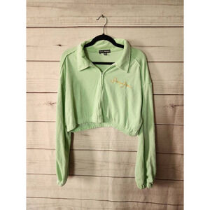 Missguided Womens Cropped Sweatshirt Green Fitted Long Sleeve French Terry 14