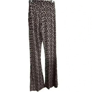 Missguided Women's Size 4 Brown Leopard Print Jersey Flare Pants Casual