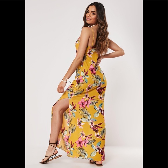 Missguided Yellow Floral Strappy Side Split Maxi Dress
