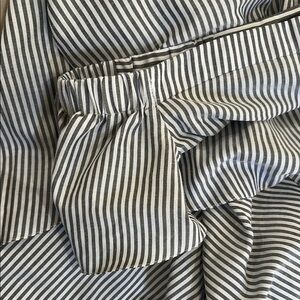 This casual short dress by Missguided features a chic off-the-shoulder neckline and stylish stretchy sleeves. The black and white vertical stripes add a classic touch, while the mini length offers a playful and relaxed vibe.