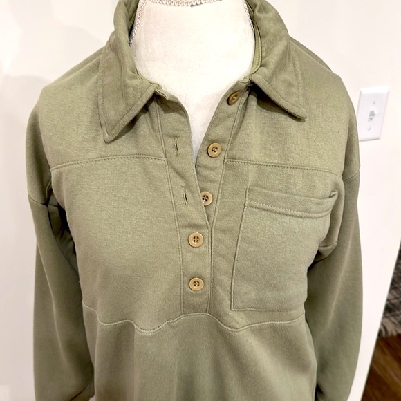 Missguided green top. Button up,cozy pullover shirt with a pocket. 💕