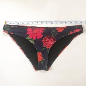 Excellent condition bikini bottoms from Missguided. Navy background with bright magenta/red flora peony print. Beautiful pattern! Size US 8 approx 16” across the waist.