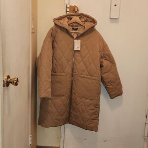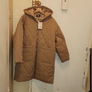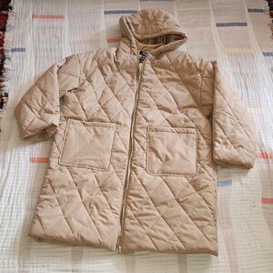 Missguided Petite quilted loneliness hooded Oversized coat with zipper closure, 2 patch pockets front.