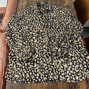 Animal print button down oversized fit. Oversized fit that looks great with biker shorts, leggings It can even be worn as mini shirt dress.