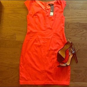 V neck, Orange sheath Stretch dress great for work Or with a cute blazer! Brand new never worn. Also, in Black! This dress can be worn all kinds of ways! With or without a belt. With or without a blouse underneath! Please no counters. Thank you!