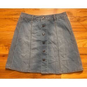 This skirt was worn once. It is flawless. It buttons down the front ,has two pockets on the back and belt loops. Stretchy material.