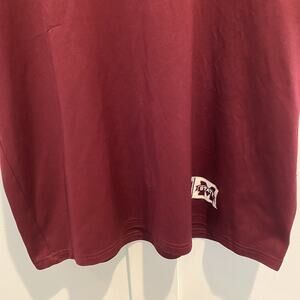 This is a men's large Mississippi State Bulldogs shirt in maroon and grey, designed by Under Armour for optimal performance. It is officially licensed for use during the regular football season. The shirt features the team's branding and colors, making it a perfect choice for fans looking to show their support while staying comfortable during games or workouts.