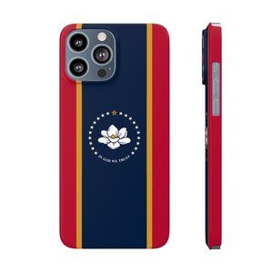 <p>This super slim phone case, designed with the Mississippi State flag, is a perfect fit with its premium finish, smooth lines, and lightweight construction; they’re an excellent choice that complements your personal style.