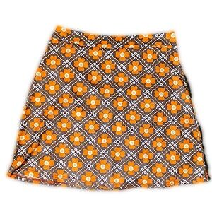 Misslook 70’s Inspired Groovy Orange Brown Floral Print Midi-Skirt Retro Style L