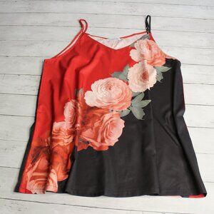 Misslook Camisole Top Plus Size 3XL Sleeveless Tank Shell Black Red Roses