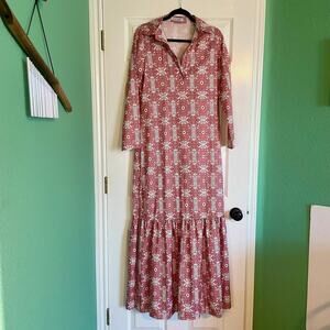 Misslook Coral Pink Batik Print Oversized Maxi Dress Ruffle Bottom Size Small