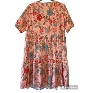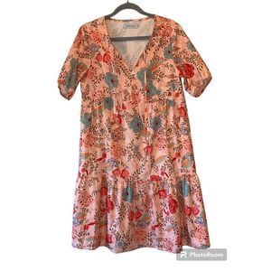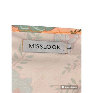 Misslook Dress Peach Floral Print Size Large Short Sleeves
